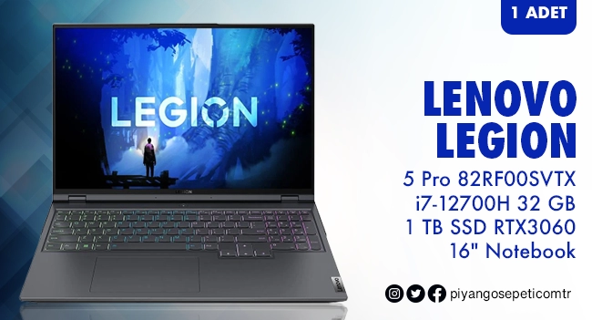 1 adet 96.000,00 TL değerinde Lenovo Legion 5 Pro 82RF00SVTX i7-12700H 32 GB 1 TB SSD RTX3060 16" Notebook