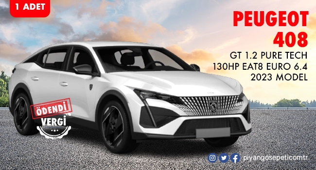 1 adet 1.958.281,00 TL değerinde PEUGEOT 408 GT 1.2 PURE TECH 130HP EAT8 EURO 6.4 2023 MODEL OKENİT BEYAZ