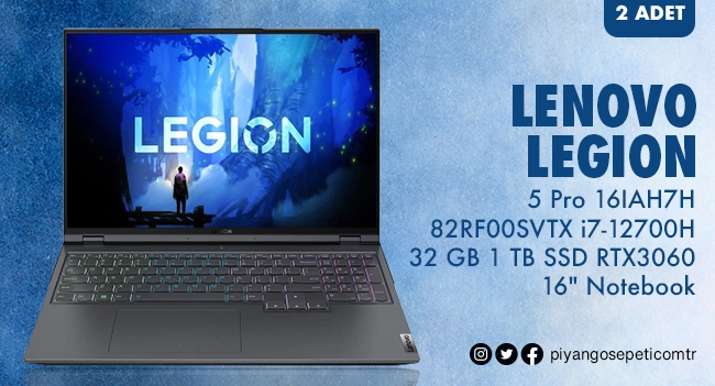 2 adet 64.950,00 TL değerinde Lenovo Legion 5 Pro 16IAH7H 82RF00SVTX i7-12700H 32 GB 1 TB SSD RTX3060 16" Notebook