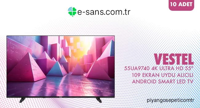 10 adet 28.299,00 TL değerinde Vestel 55UA9740 4K Ultra HD 55" 109 Ekran Uydu Alıcılı Android Smart LED TV