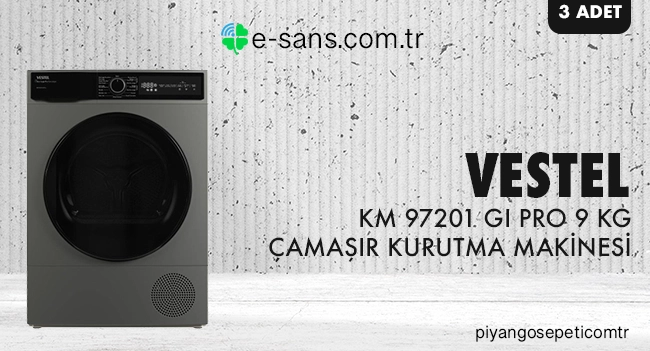 3 adet 28.999,00 TL değerinde Vestel KM 97201 GI Pro 9 kg Çamaşır Kurutma Makinesi