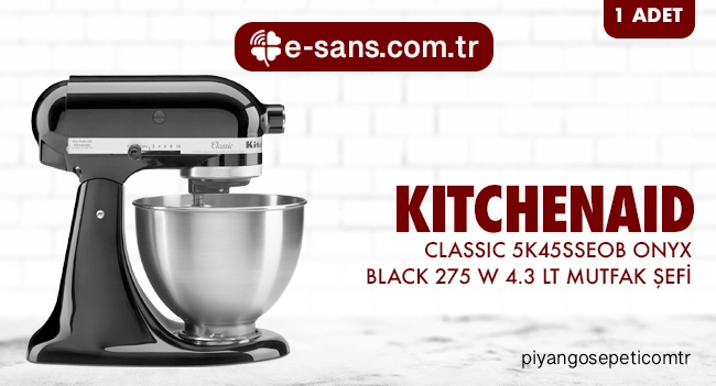 1 adet 31.499,00 TL değerinde KitchenAid Classic 5K45SSEOB Onyx Black 275 W 4.3 lt Mutfak Şefi
