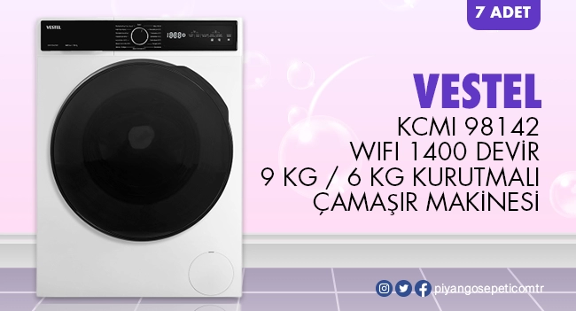 7 adet 15.650,00 TL değerinde Vestel KCMI 98142 WiFi 1400 Devir 9 kg / 6 kg Kurutmalı Çamaşır Makinesi