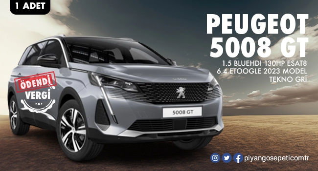 1 adet 2.136.076,21 TL değerinde Peugeot 5008 GT 1.5 BlueHdi 130hp ESAT8 6.4 etoogle 2023 Model Tekno Gri